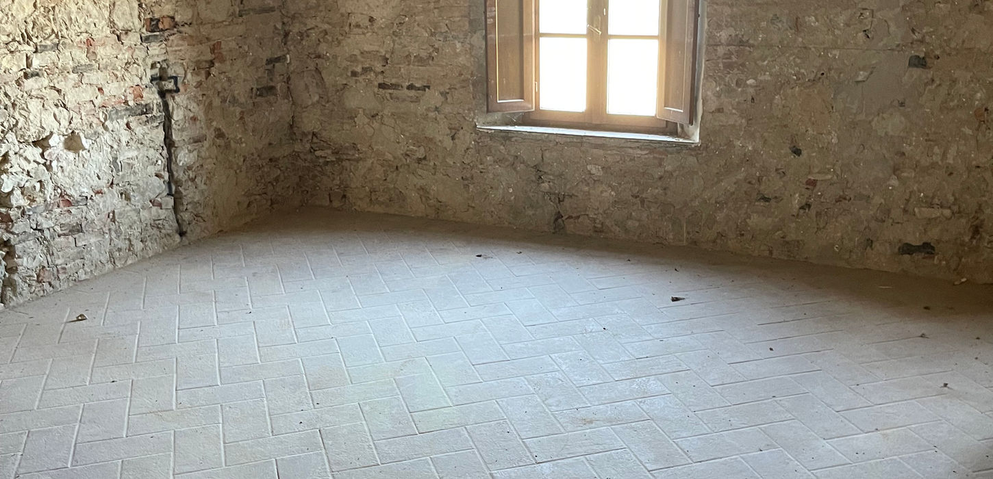 At Podere Sole, we created a refreshed apartment interior by embracing its rustic charm and blending existing pieces with natural materials rooted in the Tuscan landscape.